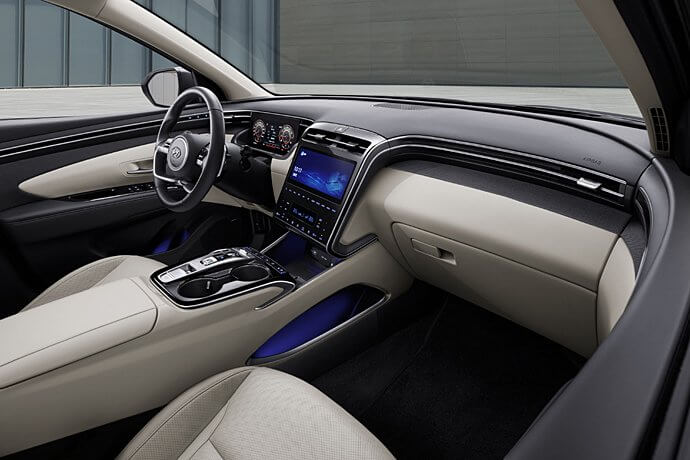 2023년형 Tucson 내부로 들어가시면 편안함과 기능성을 동시에 제공하는 세심한 디자인의 인테리어가 여러분을 맞이할 것입니다.